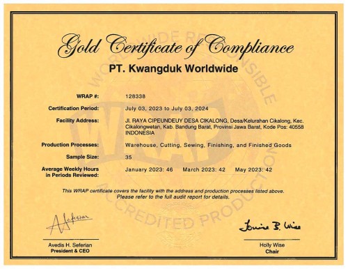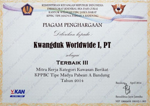 PT Kwangduk Worldwide Co., Ltd. manufactures the world's best quality menswear through continuous research and development by masters of menswear from Korea and Japan and 4,000 local workers based on stable productivity