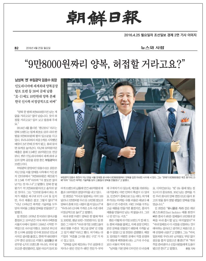 4월 25일자 조선일보 경제면 기사에 부림광덕 ZEN「젠」에 관한 기사가 실렸습니다.