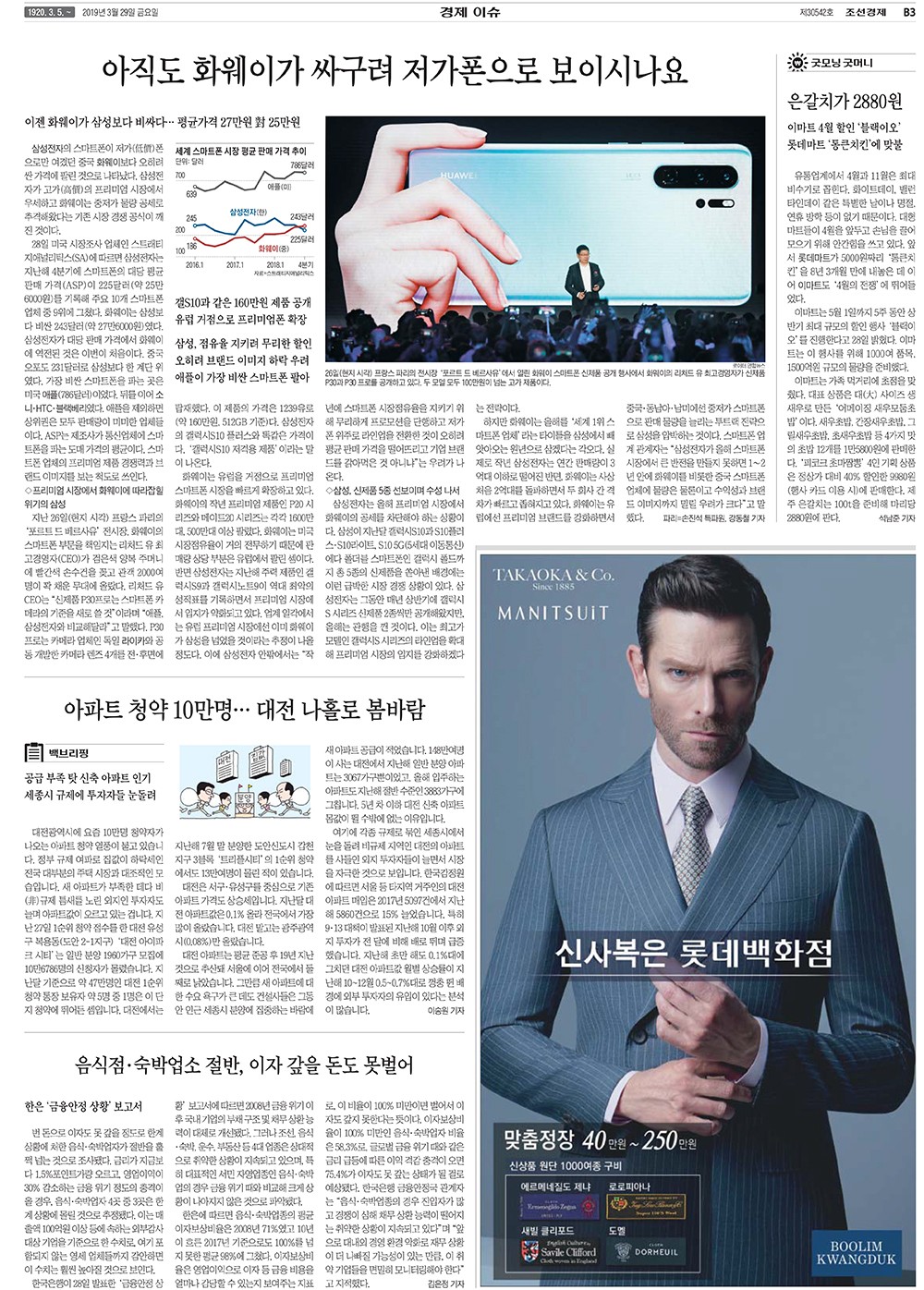 MANITSUIT「맨잇슈트」, TAKAOKA & Co. 「타카오카앤코」 2019년 3월 26일조선일보1면광고