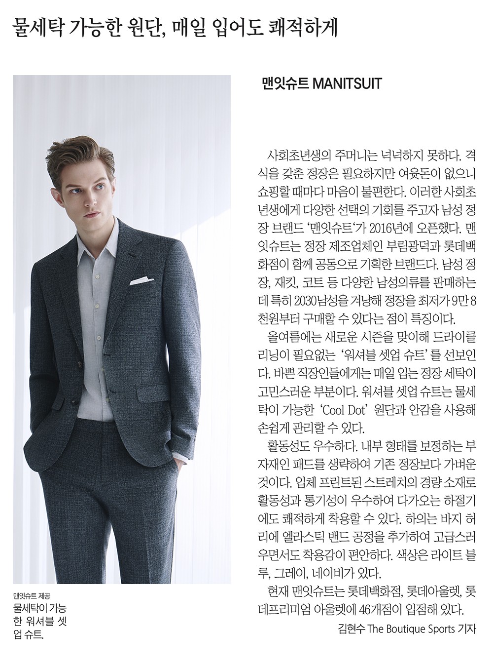 MANITSUIT「맨잇슈트」 2019년 4월 12일 조선일보 부티크 기사